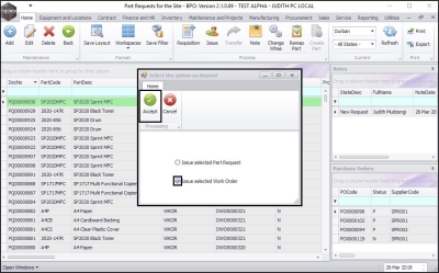 - Select the Part Request option if you only want to issue the initially selected part request.