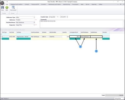 - You will note that the Quantity field will initially auto populate with the total quantity of items available in all the batches in the selected source warehouse bin. The Average Unit Cost fields will be populated with the average cost of all of these items in the selected bin.