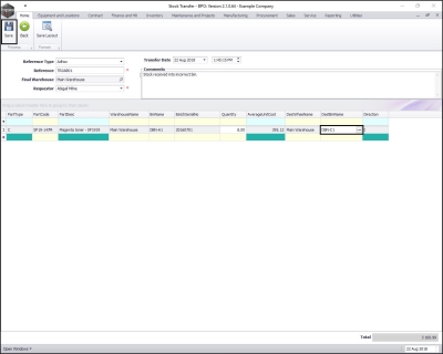 - When you have finished adding details to the Stock Transfer screen, click on Save.