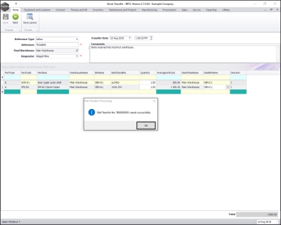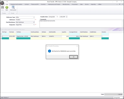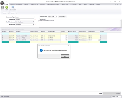 - A Part Transfer Processing message box will pop up informing you that;