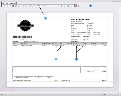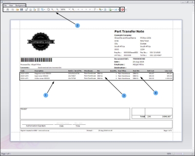 - From here you can View, Print, Export or Email the Part Transfer Note.