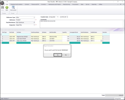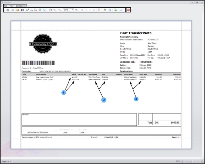 - In this image you can see that all the item lines have pulled through to the Part Transfer Note.