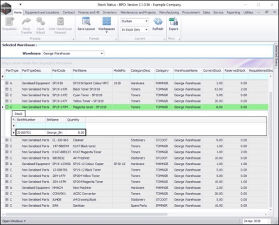 - The parts data grid will now display a list of all the stock item types available on hand in the Current Stock column.
