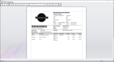 - In this screen you can View, Print, Export or Email the Goods Received Note.