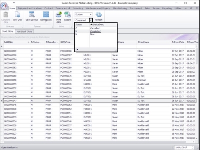 - You can now view the completed GRN in the Goods Received Notes Listing screen where the Status is set to Completed.