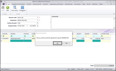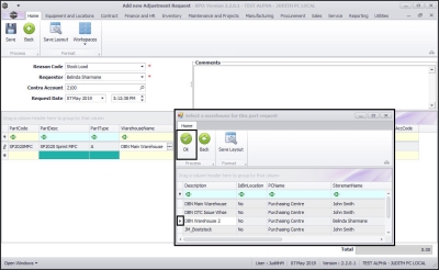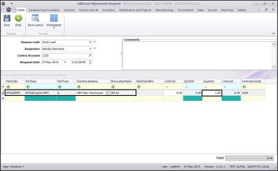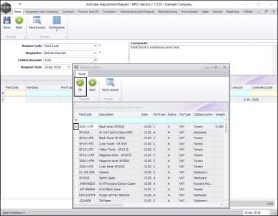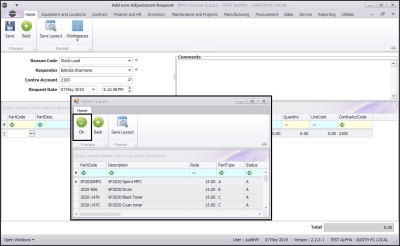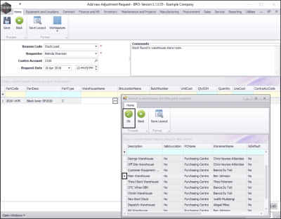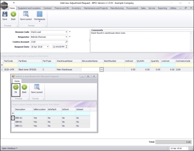 - The Part Code, Part Description, Part Type, Warehouse Name, Bin Location Name text boxes will now auto populate with the selected part details.