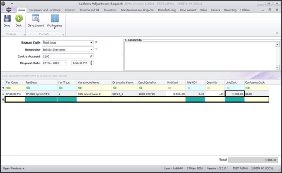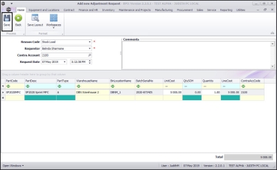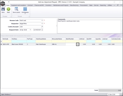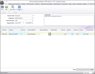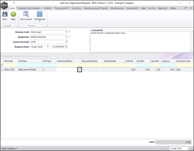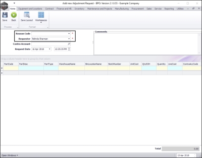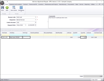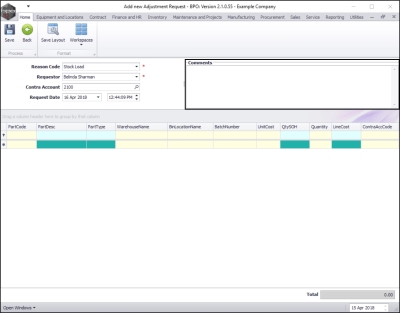 - Comments: Click in this text box and type in a comment relating to this adjustment.
