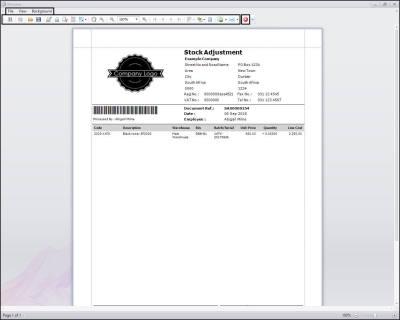 - The Stock Adjustment report preview screen will be displayed.