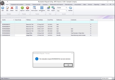 Once a stock revaluation request has been viewed and found to be correct, the request can be Approved. If the details are incorrect, Edit the request and make the required changes before Approval. If the revaluation is not required or created in error, etc. the request can be Declined.