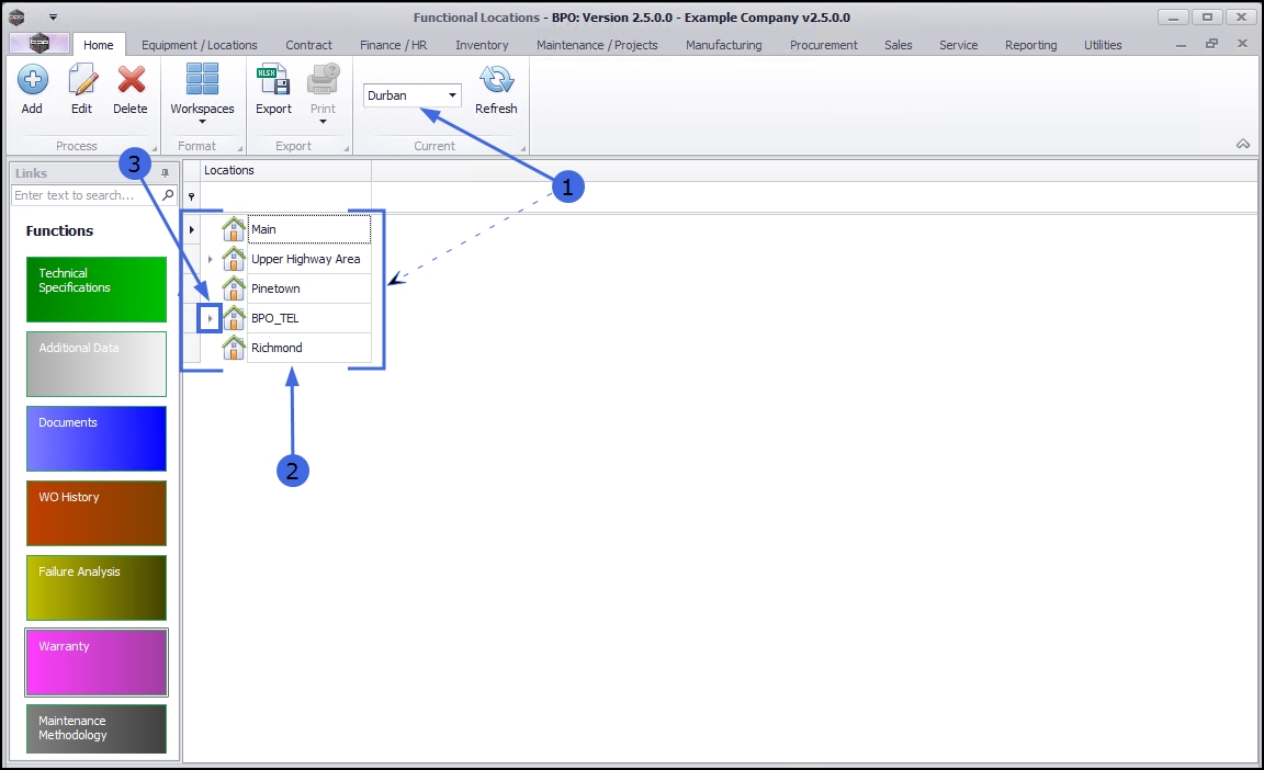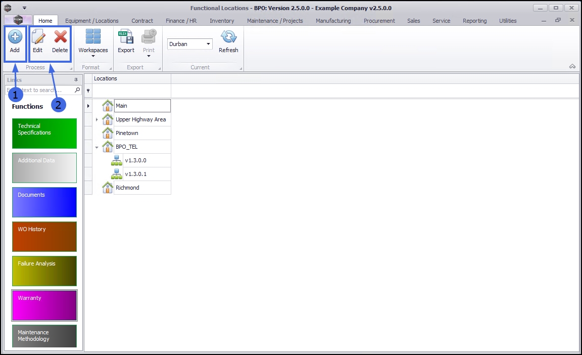 | Ribbon Access: Equipment / Locations > Functional Locations |