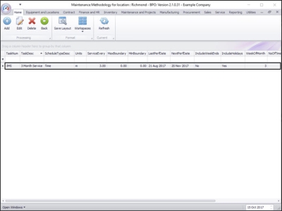 - You can now view the new Maintenance Task in the Maintenance Methodology for location: [] screen.