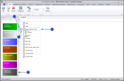 - If the Maintenance Methodology is to be linked to a main location, select the row of that main location. In this example, Upper Highway Area is a main location.