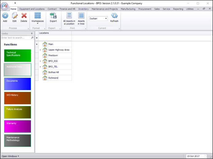 | Ribbon Access: Equipment / Locations > Functional Locations |