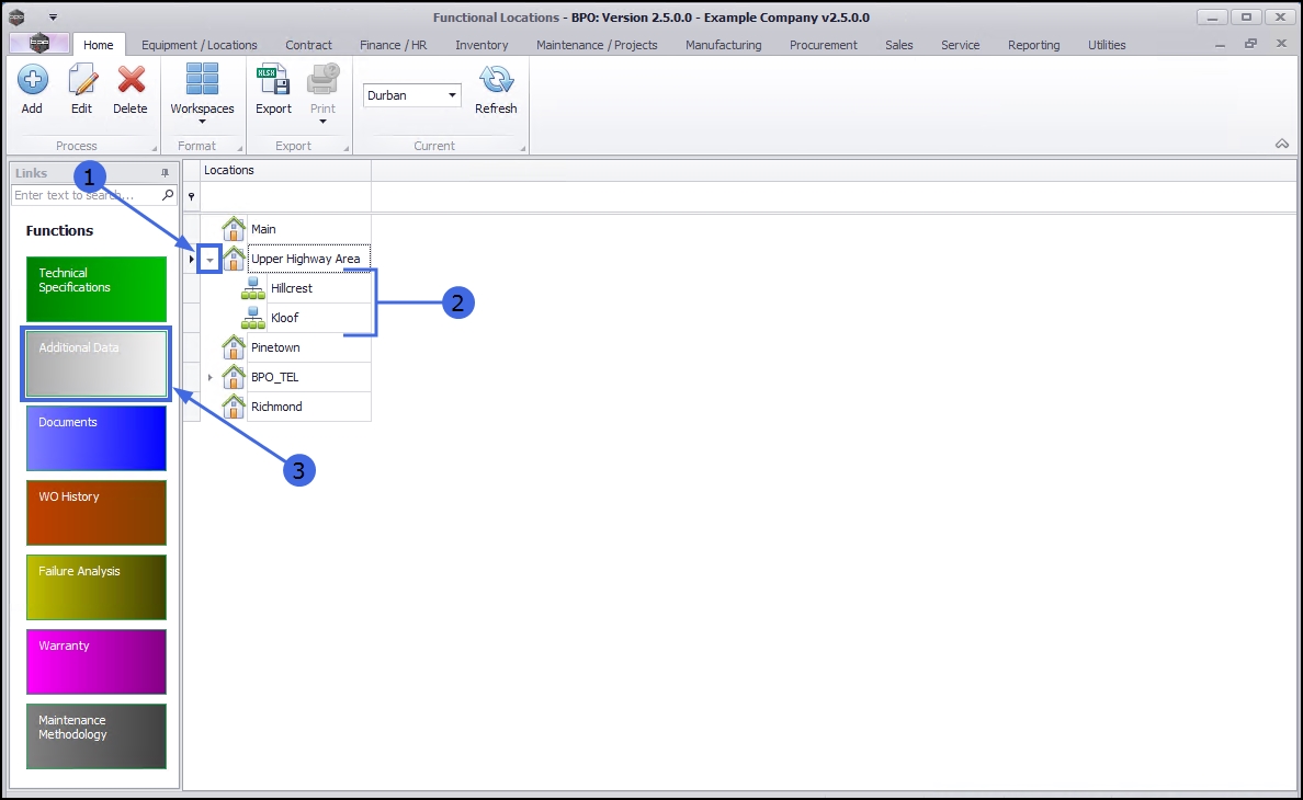 - In this example, Hillcrest and Kloof are sub locations of Upper Highway Area.