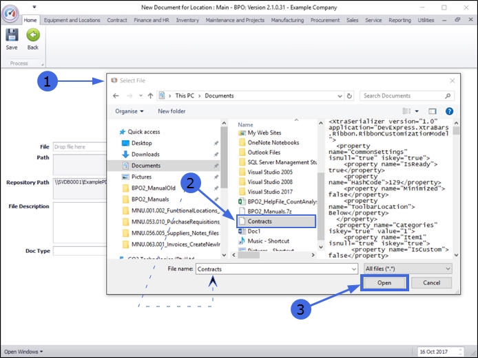 - The Documents for location: [] screen will open.