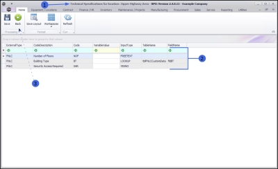 - If you wish to view the Technical Specifications of a main location, select the row of that main location. In this example Upper Highway Area is a main location.