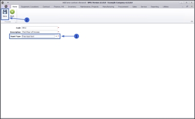 - Description: Type in a description for the code in the previous field e.g. number of floors, cable access.