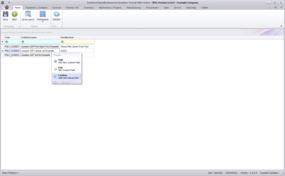 - Right click in the row of the Technical Specification where you wish to make changes.