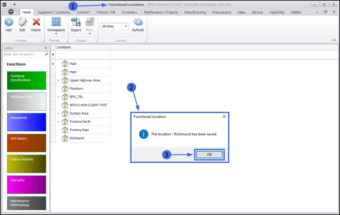 - A Functional Location message box will pop up advising the following: