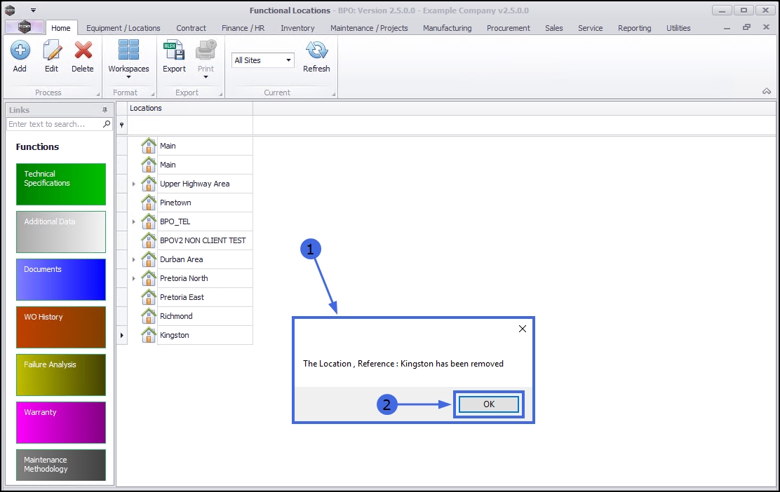 Functional Locations - Delete a Functional Location