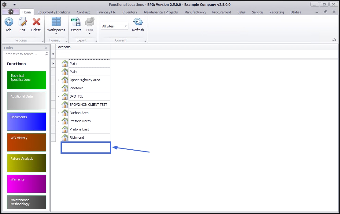 - In the Functional Locations screen,