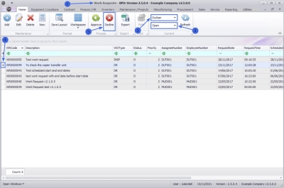 | Ribbon Access: Maintenance / Projects > Work Requests |