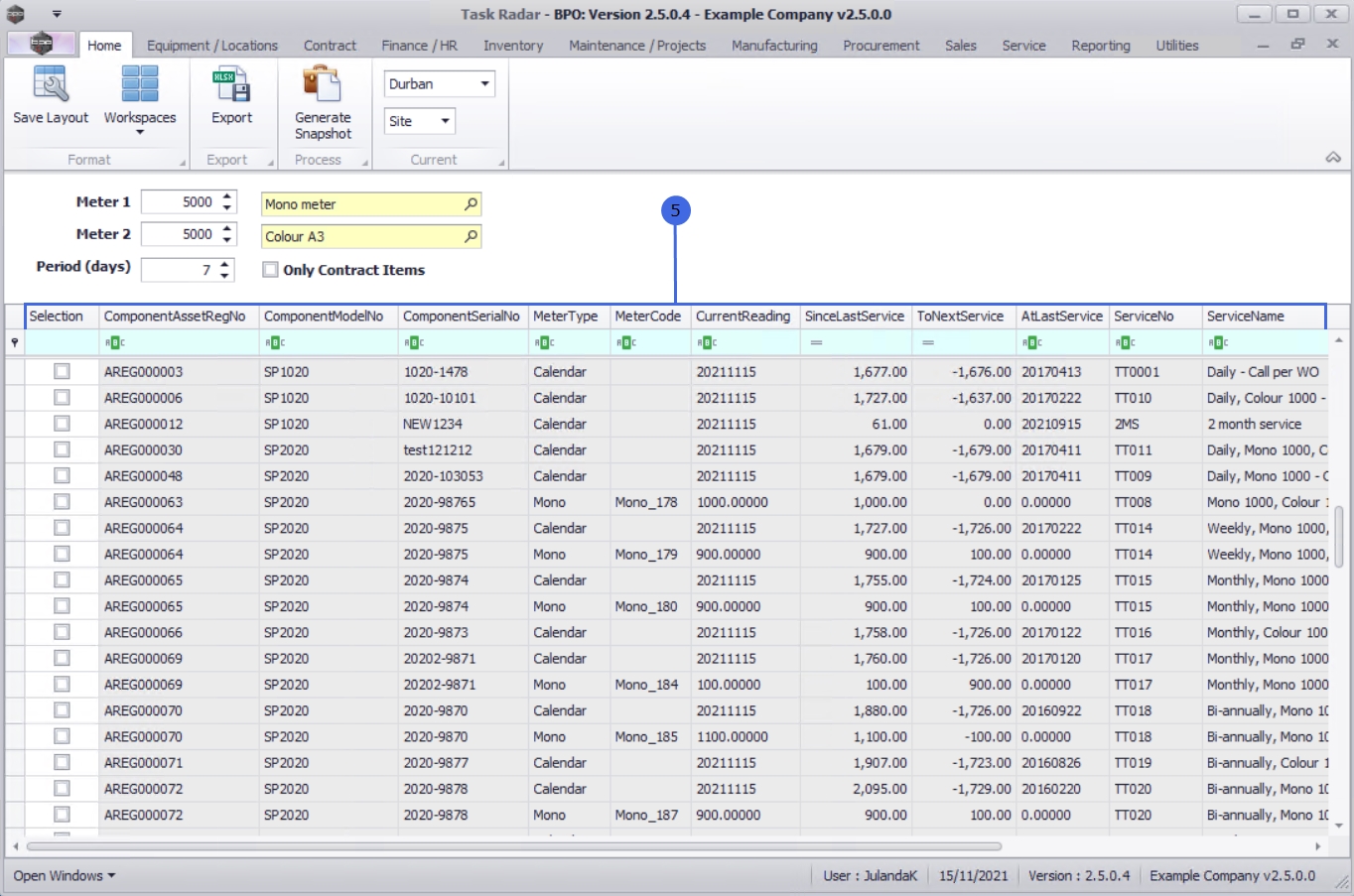 - Specifying 7 as the period will display all inspections that are currently due, including items due 7 days from the current date.