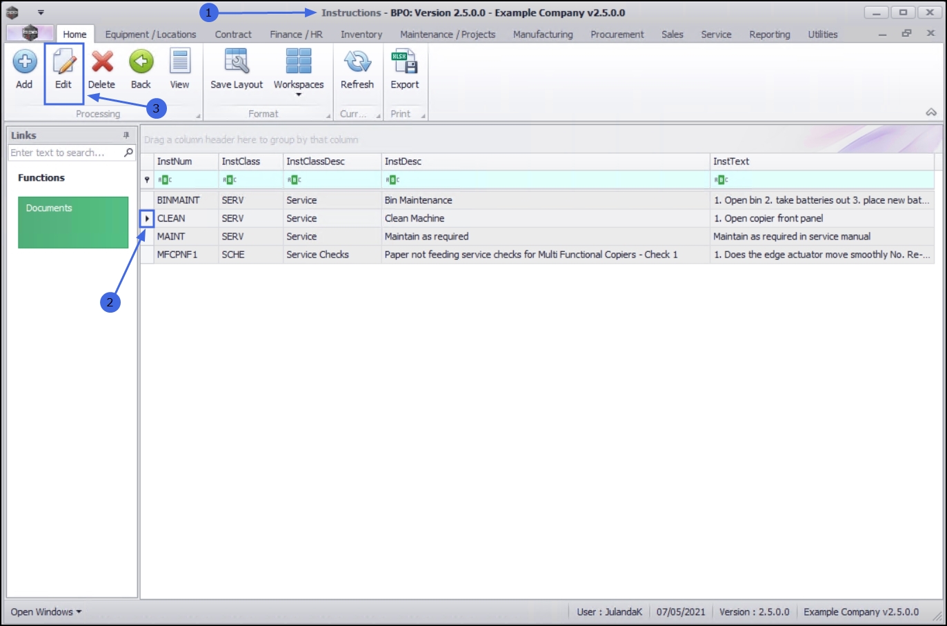 | Ribbon Access: Maintenance / Projects > Instructions |
