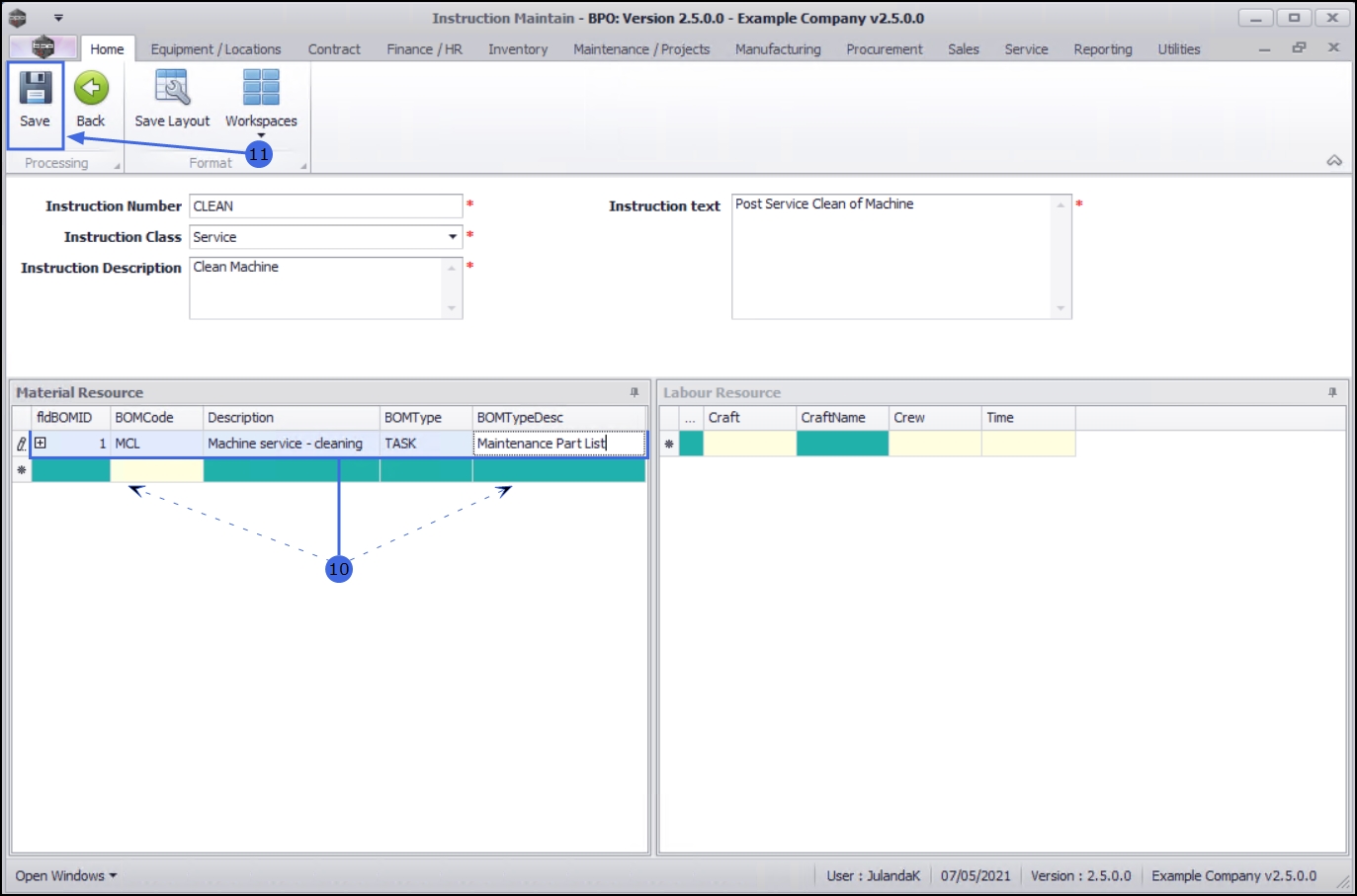 Note that you can add more than one BOM (material resource) to an instruction. - Continue adding BOM details as required.