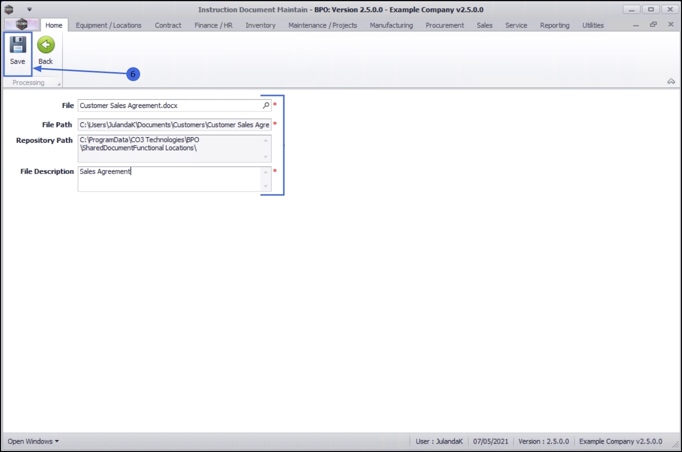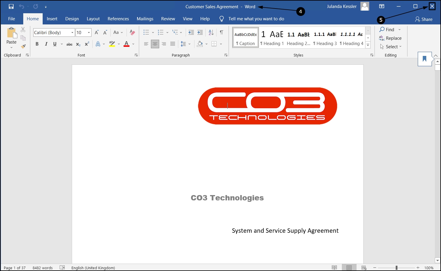 - The example has the Sales Contract saved as a Microsoft Word document.