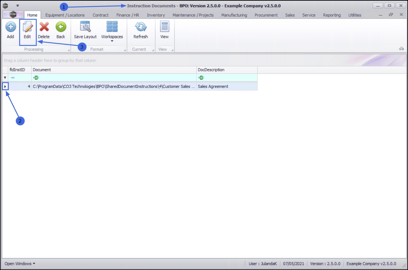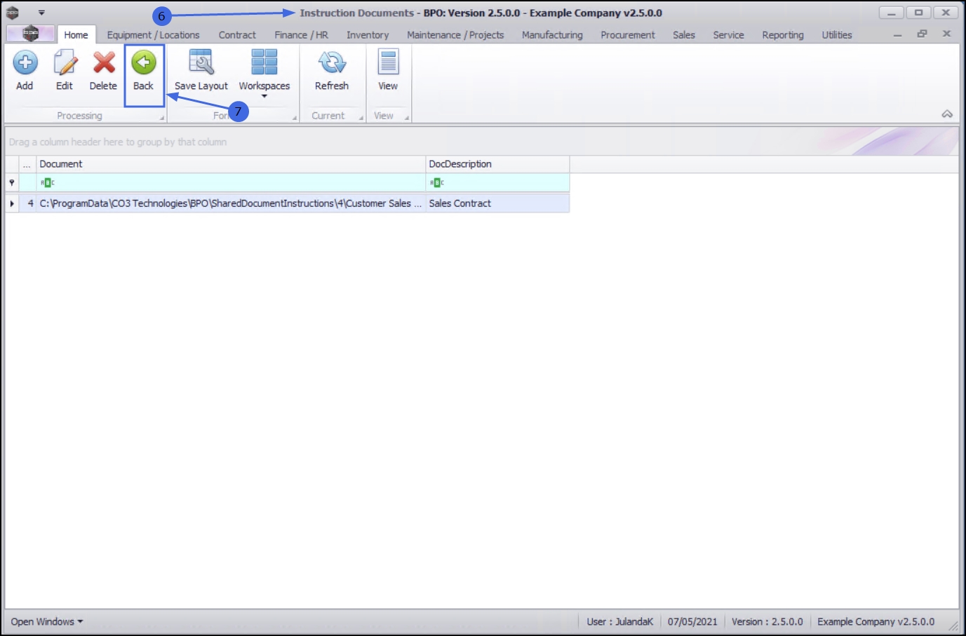 | Ribbon Access: Maintenance / Projects > Instructions |