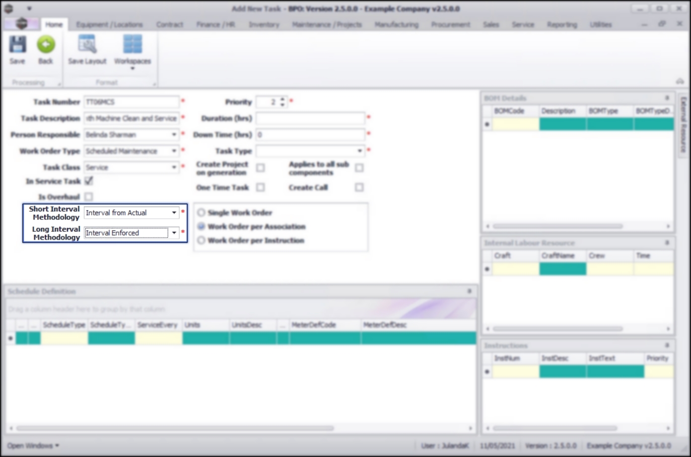 - Short Interval Methodology: Click on the drop-down arrow to select the short term methodology for this task, from the menu list.