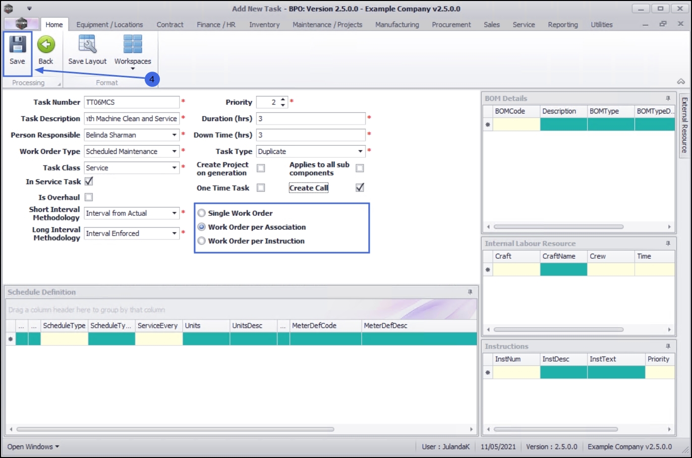 - Add BOM details, Internal Labour Resources and External Labour Resources where applicable.