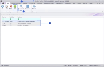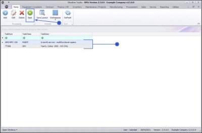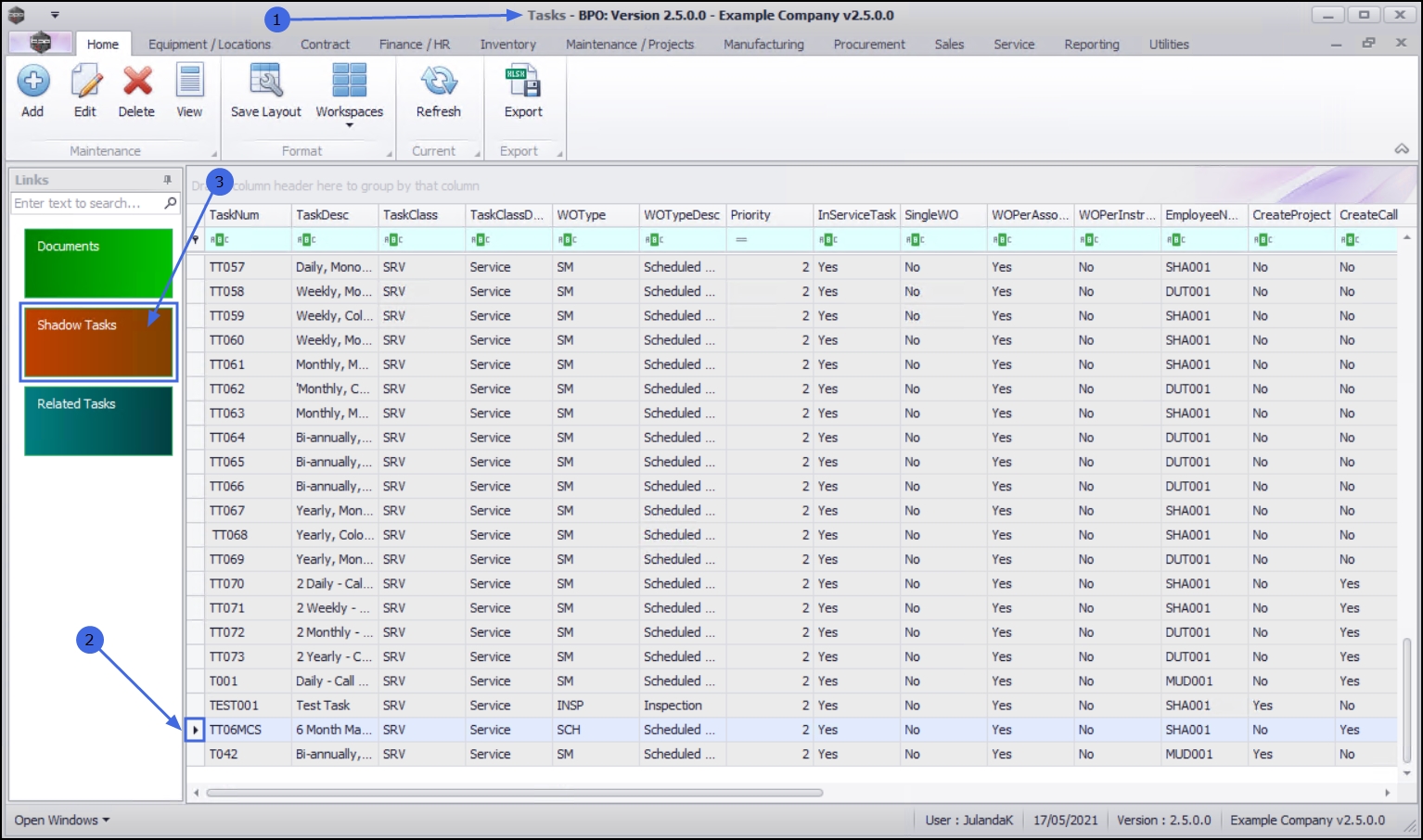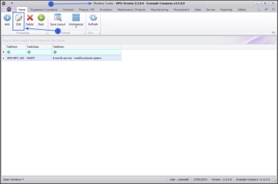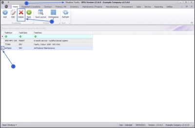 Ribbon Access:   Maintenance / Projects >  Tasks