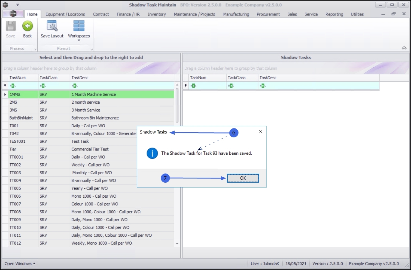 Note that you can remove a task item from the Shadow Task grid, by dragging and dropping the task back to the task list column, if it is not required.