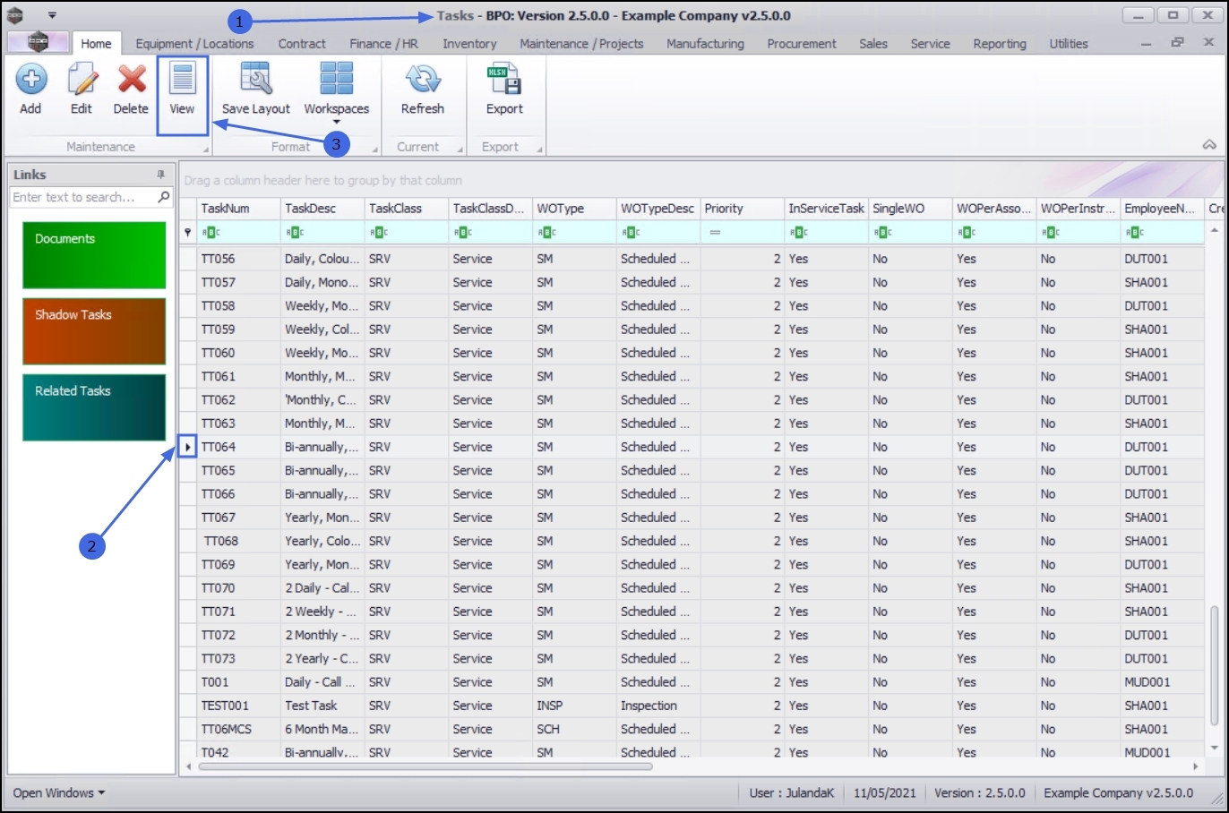 | Ribbon Access: Maintenance / Projects > Tasks |