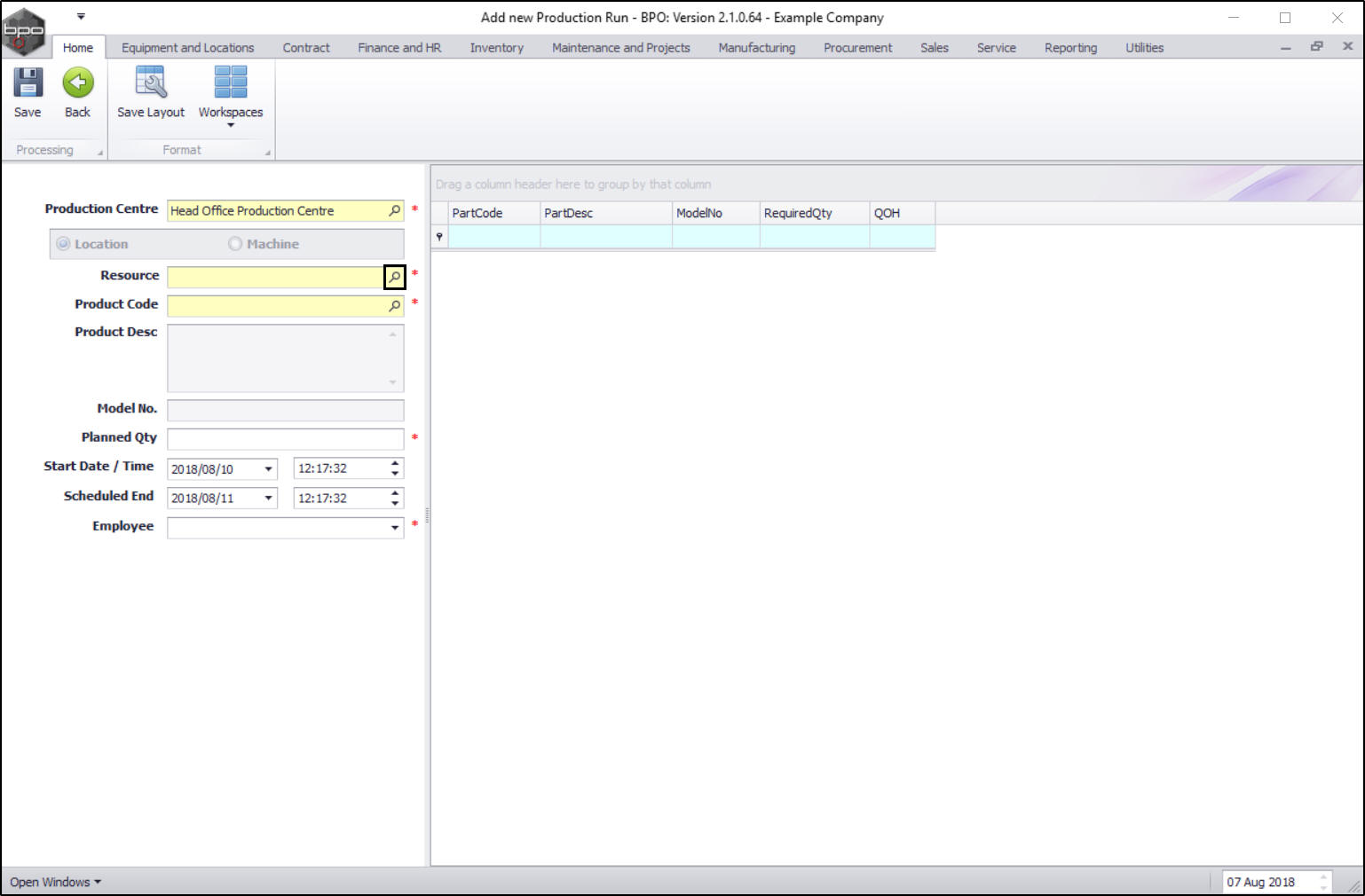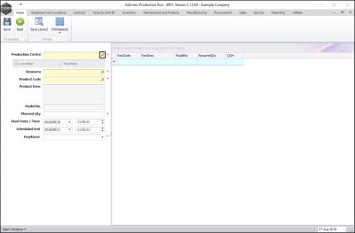 - The Add new Production Run screen will be displayed.