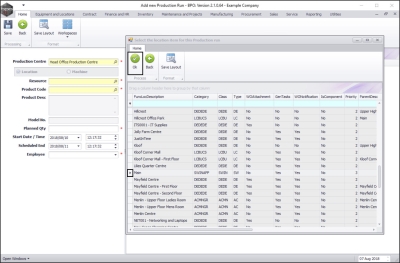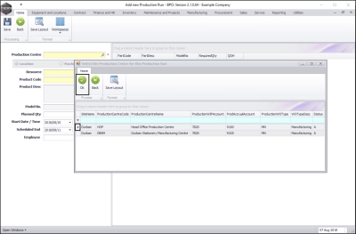 - A Select the Production Centre for this Production Run screen will pop up.