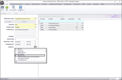 - Employee: Click on the drop-down arrow and select the employee responsible for this production run.
