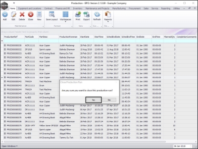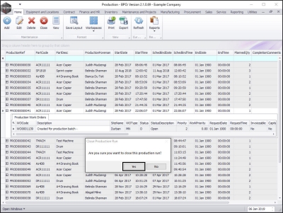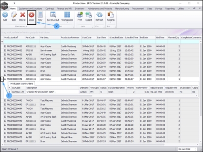 - Ensure that the row selector is in front of the same production run that you wished to close.