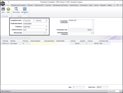 - Line Cost: this is the Unit Cost divided by the actual quantity produced. (In this image the line cost is 600 ÷ 1 = 600)
