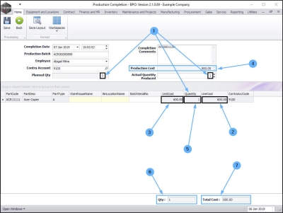 - Production Batch: This will auto populate with the batch serial number set up on this production run.