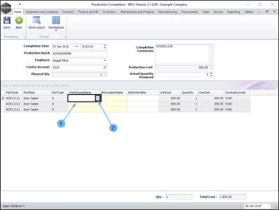 - Contra Account: This will populate with the chart of account number initially set up for this production run. You can click on the search button and select an alternative account number if required.