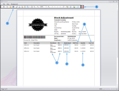 - From here you can View, Print, Export or Email the Stock Adjustment report.