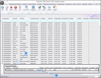 The Production listing screen will display.