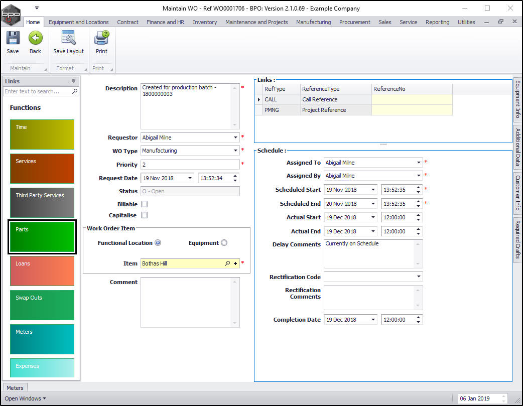 • Assigned To: This will populate with the person currently logged on to the system. You can click on the search button and search for an alternative person to be responsible for the part request if required.