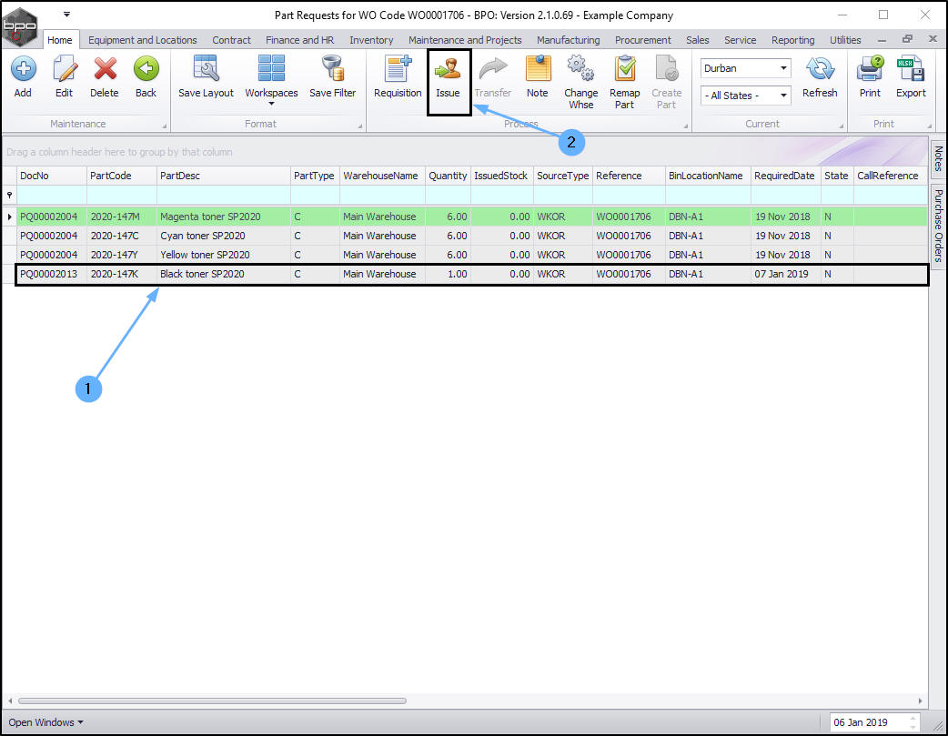 2. Note: Ensure that this part is also issued. The issue process can be done from this screen.