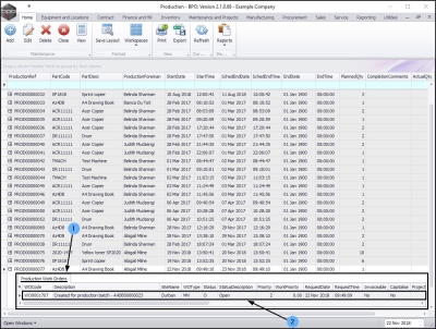 - The Production Work Orders frame will open.