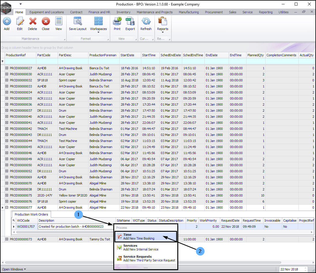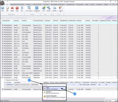 Log Labour Time from the Production Listing screen