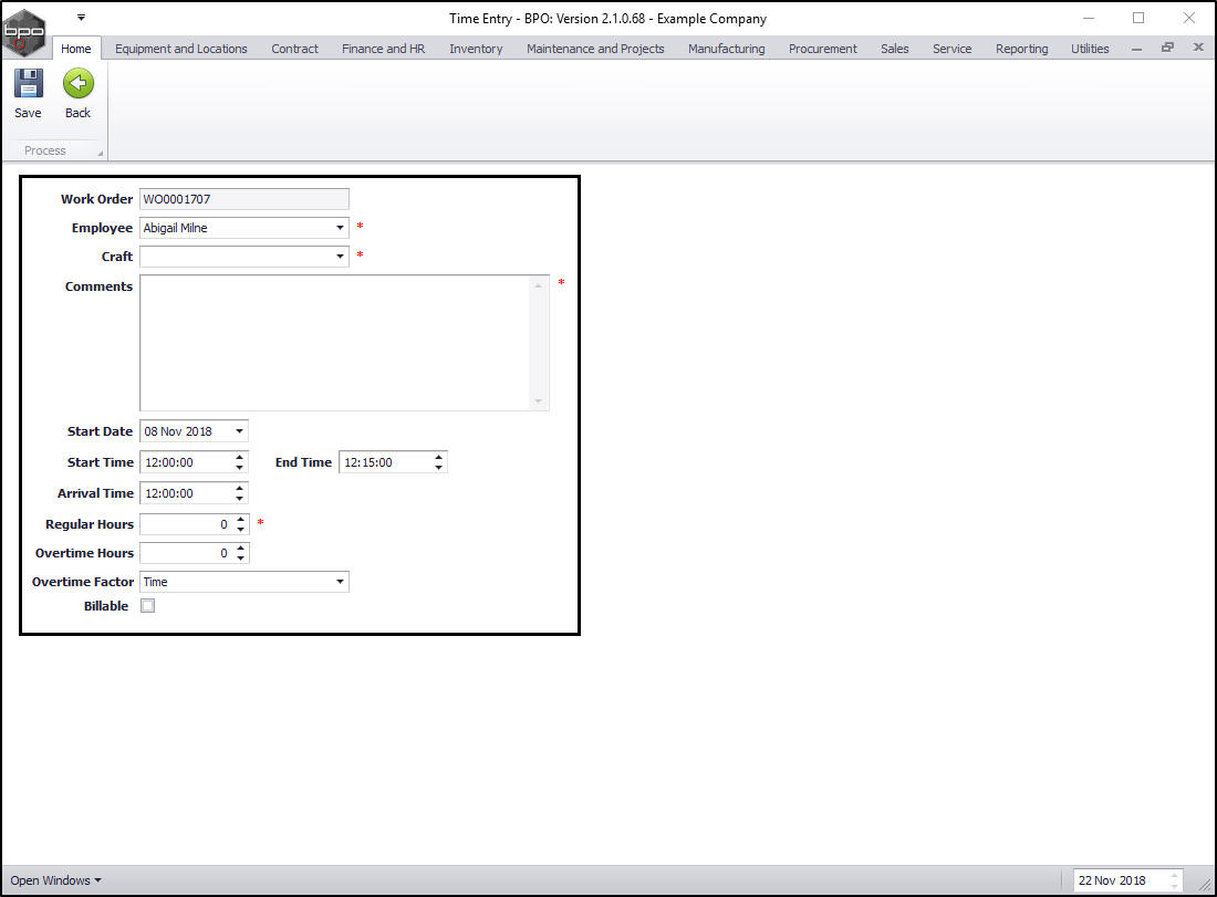 - Billable: Click on this check box if this labour time is billable.